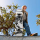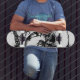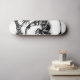 O conselho natural do skate com uma imagem ilustrada preto e branco de um crânio na espinha que flutua com uma mão de esqueleto que alcança ao redor. Nervoso e artístico para o patinador talentoso.