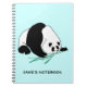 Caderno personalizado: Uma panda ilustrada preto e branco que guardara tiros de bambu verdes em sua pata e que come os.