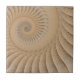 azulejo cerâmico com "Undertow" de Susan Wallace. Copyright © 2008, Susan Wallace. Uma espiral varrida, texturizada com uma espiral de espelhamento, sugerindo que os confins marinhos se encontram numa onda; em areia ouro com destaques cinzas.