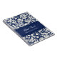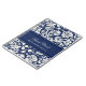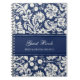 O caderno espiral do livro de hóspedes do casamento em azuis marinhos escuros e o creme fora da cor damasco floral clássica branca, com o texto customizável para adicionar seus próprios nome e casamento datam.