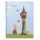 Este caderno personalizado meninas tem um tema bonito do rapunzel. Há uma torre com o Rapunzel que está ao lado dele. Há florescência das flores e algumas borboletas que voam ao redor. Você pode facilmente personalizar este seu nome. Gráficos pelo design de JD Digi em MyGrafico