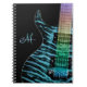 Caderno azul ciano personalizado da música da guitarra elétrica. Preencha seu nome e a inicial no alerta para personalizá-lo de qualquer maneira e personalizar gosta. Um grande presente para seu guitarrista, músico ou melómano favorito, e para que os compositores escrevam poemas líricos dentro.