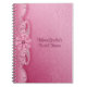 Caderno multifacetado do chá de panela elegante feito no rosa bonito em gráficos cor-de-rosa do damasco. Do rosa uma beira bonito swirly, no lado esquerdo tem gráficos de um arco cor-de-rosa da fita, no meio. O texto em uma cor de Borgonha é inteiramente customizável ler o que você quer. Aperfeiçoe para ter os convidados do chá de panela a assinar dentro com, a lista de presentes, e as mensagens à noiva dos convidados.