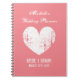 Caderno ou jornal do planejador do casamento vintage com design rústico do coração. Organizador chique do país bonito para noivos contratados do casal/os futuros que planeiam seu partido do casamento. Tipografia elegante do roteiro com símbolo resistido do amor. O fundo cor-de-rosa coral bonito ou personaliza. Pouco para fazer o livro da lista para o orçamento, os custos, as notas e os planos.