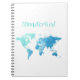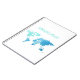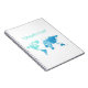 Caderno do Wanderlust com um mapa do mundo em aguarelas azuis