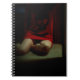 Caderno que caracteriza uma menina que modela um vermelho, camisola do crânio.