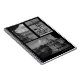 Caderno com as três fotografias da fonte de Paris, do desempenho de Kyoto, e do terreno de Oxford.