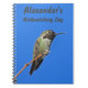 Personalize este caderno de registro de observação de pássaros para suas horas intermináveis passadas alegremente na natureza. Este notebook apresenta um adorável beija-flor sentado no alto em um galho estéril fazendo levantamentos do mundo. O bico longo deste pequeno pássaro e pequenas penas se destacam contra o azul brilhante do céu. Personalize rápida e facilmente com seu nome.