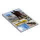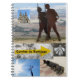Um caderno com um cobrir que caracterize diversas fotos da rota da peregrinação de Camino de Santiago, incluindo fotos de um waymark do escudo de scallop, uma estátua do peregrino, a catedral de Santiago, uma seta amarela, uma cruz de St James, e caminhando botas.