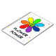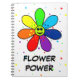 Uma flor do arco-íris com uma mensagem de "flower power" e um fundo dotty colorido.