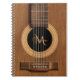 Guitarra acústica de madeira morna. Fim de aço da guitarra da corda de Mahogony do caderno acima para seu guitarrista, músico ou melómano favorito. Caderno espiral do design musical para a escola, ou seu casa ou estúdio. Preencha seus nome e inicial para fazer-lhe seu.