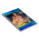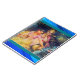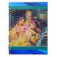 Imagem do calendário do vintage de Radha e de Krishna em um humor romântico com uma cachoeira e os pavões no fundo