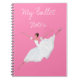 CADERNO DO BALÉ. CADERNO BONITO PARA ANOTAÇÕES DA DANÇA NO FUNDO DO ROSA QUENTE. UMA BAILARINA BONITA VESTIU-SE EM UM TUTU BRANCO CLÁSSICO COM A SAIA MACIA AMPLA QUE TOMA UM SALTO GRANDE DE JETE. UM PRESENTE BONITO PARA AMANTES DO BALÉ. DESENHO DO BALÉ POR MARCELA BLANCO