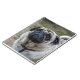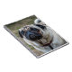 Um fim acima da fotografia de um cão bonito do pug imprimiu no cobrir de um caderno.