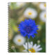 Um fim bonito acima da fotografia de um cornflower azul imprimiu no cobrir de um caderno.