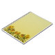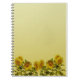 Espiral - caderno encadernado com beira inferior de girassóis amarelos brilhantes no fundo textured do olhar.