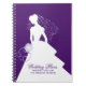 Caderno espiral elegante feito em roxo e em branco, com uma silhueta branca de uma noiva, contra um fundo roxo. O texto roxo é inteiramente customizável. Personalize o texto para ler o que você quer. Aperfeiçoe para o planeamento héctico da noiva.