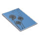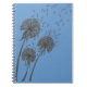 O caderno com um trio do dente-de-leão mostra em silhueta o sopro no vento. Aprecie!