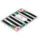 Um caderno espiral para a caracterização dos professores listras preto e branco projeta na parte dianteira com direito e superior esquerdo do design floral no fundo. Texto feito sob encomenda das características dianteiras sob a ilustração de uma maçã cor-de-rosa.