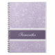 Um jornal espiral bonito com teste padrão de flores roxas e brancas elegante, com o texto customizável para adicionar seu próprio nome. Perfeito como um presente personalizado para toda a menina adolescente esta época natalícia, usa-o como um diário ou um planejador da escola.