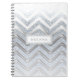 Espiral Caderno moderno branco e prateado com brilho