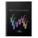 Caderno personalizado da música dos saxofones do arco-íris. Nomeie seu caderno no alerta para personalizar e para personalizá-lo de qualquer maneira goste. Um grande presente para seu jogador, músico ou melómano favorito de saxofone, ou para que os compositores escrevam poemas líricos dentro.