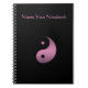 Caderno personalizado do símbolo de Yin Yang. Um símbolo cor-de-rosa e preto metálico de yang do yin do equilíbrio, a harmonia, a integralidade e a conclusão, e o título de sua escolha. Nomeie seu caderno o que quer que você gosta e preenche dno alerta.