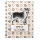 Este caderno personalizado de cachorro Husky apresenta um padrão de pegada adorável e pode ser personalizado com qualquer nome.