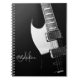 Caderno personalizado preto e branco da música da guitarra elétrica. Preencha seu nome e a inicial no alerta para personalizá-lo de qualquer maneira e personalizar gosta. Um grande presente para seu guitarrista, músico ou melómano favorito, e para que os compositores escrevam poemas líricos dentro.