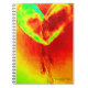 Caderno espiral alaranjado, vermelho e amarelo brilhante. Imagem pintado mão de um coração de sangramento no cobrir. Aperfeiçoe anotando seus pensamentos como um jornal, notas da escola ou como um presente.
