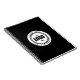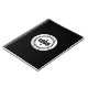 Caderno preto com LOGO personalizado.