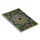 Um caderno com um verde, um azul, e um teste padrão roxo do caleidoscópio.