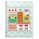 Um caderno espiral da receita que caracteriza uma ilustração de uma cozinha inspirada retro com um vermelho, uma turquesa, um amarelo, e um esquema de cores alaranjado. O fundo é ziguezague azul. Personalize com seu nome.