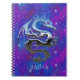 Mostre seu amor dos dragões com este caderno espiral personalizado do dragão afortunado de prata. Características deste design um fundo roxo, azul e cor-de-rosa celestial da galáxia com estrelas e um dragão de prata intrincado do protetor metálico. Há um ponto para personalizar o caderno com seu nome. Apenas incorpore seu nome ou texto à caixa e faça-lhe seu. Faz um grande presente!