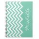 Caderno verde do teste padrão da viga da hortelã com nome ou monograma. As listras elegantes do ziguezague projetam com tipografia da caligrafia do roteiro. Escola bonito/materiais de escritório para mulheres e meninas adolescentes.