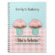Use este caderno personalizado bonito para manter todas suas receitas favoritas, fatos da refeição. lista ou notas. O caderno caracteriza uma luz - fundo azul com as verificações cor-de-rosa na parte inferior e nas palavras "cozidas à perfeição" com os dois cupcakes acima dele. Use o modelo do premade para introduzir seu próprio fraseio. Grande presente do housewarming ou para qualquer um.