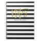 Mostre seu estilo com um novo notebook chic! Este notebook moderno apresenta listras brancas e pretas, letra de folha de ouro falso em tendência e texto personalizado. Altere o estilo da fonte, mova o texto e muito mais com o botão "Personalizar".