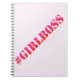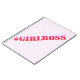 NewParkLane - caderno, com citações do divertimento: "#GirlBoss" na tipografia da máquina de escrever, no rosa quente/inclinação vermelho.