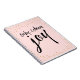Na moda e contemporâneo, este caderno cor-de-rosa com um teste padrão dos confetes do ouro na parte superior e parte inferior, características as citações, "hoje, eu escolho a alegria" no texto cursive denominado corajoso, mão-indicado por letras. Um lembrete bonito, inspirado a ser consciente de sua alegria o dia inteiro.