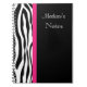 A listra preto e branco da zebra com beira cor-de-rosa personalizou o caderno. Aperfeiçoe tomando notas ou escrevendo um jornal ou um diário, etc. personalizam com seu nome, iniciais ou todo o texto que você quiser.