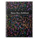Notas quentes personalizadas da música no caderno ou no Diário preto. Camadas de notas musicais coloridas no preto com uma fita preta. Nomeie seu caderno e dê-lhe um título para personalizar, a seguir personalize-o como desejado. Um presente óptimo para seu músico ou melómano favorito. #music