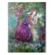 Um caderno com uma princesa feericamente que guardara pássaros em uma floresta.