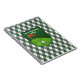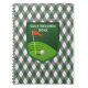 Este caderno verde, cinzento (cinzento), e branco da xadrez do argyle tem um emblema de um campo de golfe nele, mostrando os verdes e um furo com uma bandeira vermelha nele e uma bola de golfe ao lado dele. Seria uma grande maneira de manter-se a par de seus jogos memoráveis, ou seus cursos do favorito, ou de manter-se a par apenas de suas contagens e melhorias de jogo. O texto é customizável.