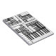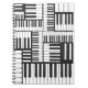 O caderno espiral com um design preto e branco temático da música que seja de um desenho de carvão vegetal de tamanhos diferentes do piano fecha enfrentar sentidos diferentes. Grande jornal para algum jogador ou professor de piano.