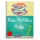 Este caderno faz um divertimento e um presente pensativo para o professor em sua vida. Personalize o cobrir com o nome dos professores. Lê: Senhorita. (notas do nome da inserção). Tem uma ilustração dos livros, da maçã e do quadro.