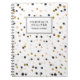Caderno customizável que caracteriza confetes coloridos. Você pode editar o texto ou suprimir d completamente.