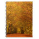 Caderno de um trajeto de passeio através das árvores de faia douradas em uma floresta em cores do outono no Outono nos Países Baixos.