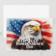No Dia da Independência dos EUA, a águia careca - um símbolo de liberdade e força - sobe em frente à bandeira ondulada dos Estados Unidos. O seu olhar piercing e o vermelho ousado, branco e azul de fundo representam a coragem, a determinação e os valores históricos comemorados no dia 4 de julho. Esta imagem corporiza o orgulho de uma nação que defende a sua independência.