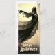 Um fantasma negro flutuante, com uma forma etérea, cercado por densas nuvens de neblina, pairando ameaçadoramente acima do chão, em uma paisagem escura e infernal com uma atmosfera estranha. Feliz Dia das Bruxas