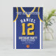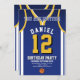Celebre seu dia especial com este Convite de Aniversário de Basball Jersey, projetado para fãs de basquete verdadeiros! Com uma design ousada de camisa inspirada pelas icônicas cores roxa e dourada, este convite é perfeito para crianças, adolescentes e adultos que adoram o jogo. Personalize-o facilmente com seu nome, idade, detalhes de festas e até mesmo o número do grupo em apenas alguns cliques. Disponível em vários tamanhos, impresso em papel de qualidade superior com uma grande variedade de acabamentos para corresponder ao seu estilo. Escolha dentre diferentes tipos de papel, impressão rápida e envio rápido para que seus convites cheguem a tempo. Seja para uma festa com tema desportivo ou para uma comemoração de fãs Lakers, este convite é a forma perfeita de entusiasmar os vossos convidados.